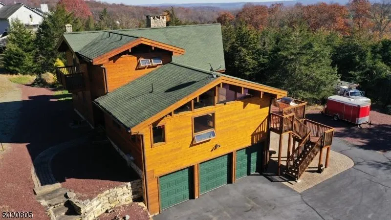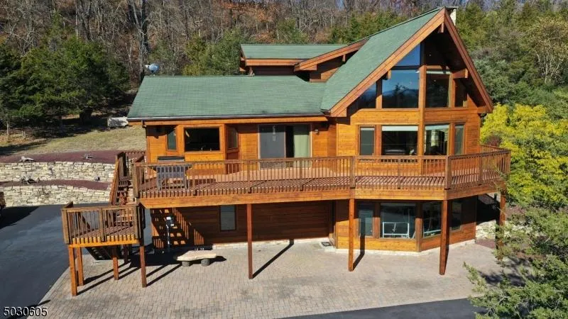 8 Highlands Lane, Hardwick NJ Magnificent meticulously custom built Lindal cedar home with planking and beams from Canada. Set back from the road on a 700 ft. paved driveway leading to an elevated homesite with tremendous views. The Great room has a A framed wall of windows to let the sunshine in and allows for views of the mountains. Floor to ceiling handpicked fieldstone wood burning fireplace and hickory hardwood floors throughout. Handpicked capped stone retaining walls. Open space floorplan with access to the large Timber Tech deck for outdoor entertaining. Large 3 Bedrooms and 3 full bath. Walkout finished basement has a workout area. Home has 5 zone heating and cooling as well as a propane fueled generator. The 3 car garage has radiant heating and air conditioning. Town certified 4 Bedroom system to add another bedroom.