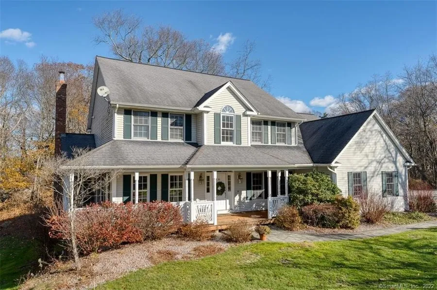 2.17 acres in New Haven County, Connecticut Located just a short 1.5-mile drive or bicycle ride from Guilfords historic Village Green, this gracious Colonial home feels a world away, virtually unseen from the street in a quiet enclave of three quality homes. Built in 2001 and lovingly and meticulously maintained and updated, a welcoming wraparound front porch greets visitors before they enter the spacious foyer with formal living room to the left, currently a music room, and dining room to the right. The flow of the home is ideal for entertaining, gatherings on a large or small scale, with French doors leading from the living room to an open floor plan kitchen, updated with stainless steel appliances, and family room with fireplace, the heart of the home, with French doors leading to a length-of-the-home back deck. The upper-level features four good-sized bedrooms, including the primary bedroom suite with vaulted ceiling, two walk...Located just a short 1.5-mile drive or bicycle ride from Guilfords historic Village Green, this gracious Colonial home feels a world away, virtually unseen from the street in a quiet enclave of three quality homes. Built in 2001 and lovingly and meticulously maintained and updated, a welcoming wraparound front porch greets visitors before they enter the spacious foyer with formal living room to the left, currently a music room, and dining room to the right. The flow of the home is ideal for entertaining, gatherings on a large or small scale, with French doors leading from the living room to an open floor plan kitchen, updated with stainless steel appliances, and family room with fireplace, the heart of the home, with French doors leading to a length-of-the-home back deck. The upper-level features four good-sized bedrooms, including the primary bedroom suite with vaulted ceiling, two walk-in closets, and expansive spa bathroom. Not to be overlooked: a main level study as well as more than 500 sq ft of finished lower-level space with walk-out, currently used as home office and exercise room, plus additional ready-to-be-finished areas. This special home in move-in condition is only minutes from shopping, restaurants, highways, town beach and train station. Copyright 2022 SmartMLS, Inc. All rights reserved. All information provided by the listing agent/broker is deemed reliable but is not guaranteed and should be independently verified.+ Show More